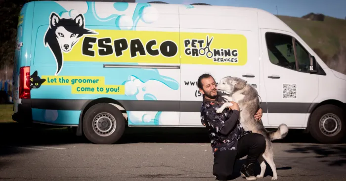 “Espaco did a fantastic job with our husky! No stress, no cages—just professional care right at our door.”